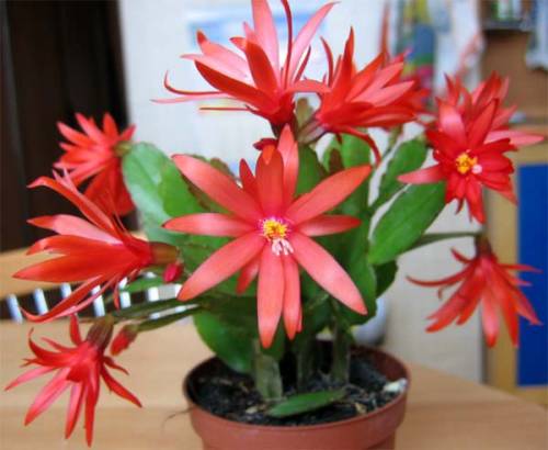 Ripsalidopsis are often confused with Schlumberger (or Decembrist). But in fact, these are two different plants of the genus Hatiora Hatiora, the main difference of which, as always, is determined by the structure of the flower. Ripsalidopsis have a radially symmetrical flower corolla structure - in schlumberger, the flower corolla is beveled. In addition, Schlumbergers bloom for Christmas, from which the Decembrists got their name. Ripsalidopsis bloom in spring. Accordingly, the rest period for the schlumberger is in February - March, for the ripsalidopsis from October to January.