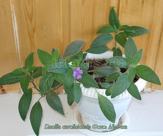 - Carolina ruellia Ruellia caroliniensis is a herbaceous perennial plant with semi-ampellated stems up to 50 cm long. The stems and leaves are covered with dense pubescence. The leaves are simple, green, with pronounced venation. The flowers are bell-shaped, lilac, 2-2.5 cm in diameter .