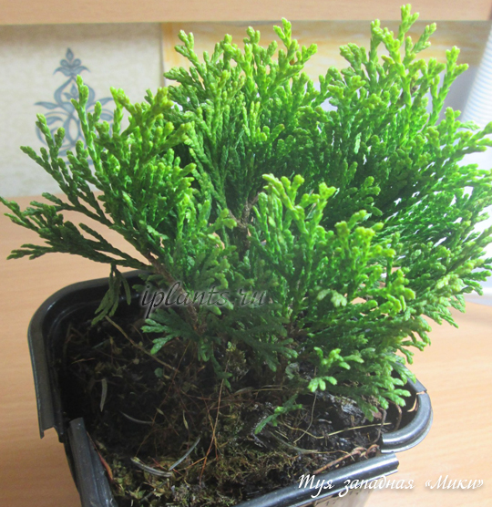 The original species - western thuja - is a garden plant, but is sometimes grown as a pre-bonsai. However, there are various varieties of western Polish-bred thuja on sale. Among them are compact plants that grow perfectly in pots. For example, the miniature variety of Miki Thuja occidentalis' Miky '- has a fine foliage structure that remains a rich green color throughout the vegetation. The crown is very dense, dense, in an adult plant of a wide conical shape. In winter it can take on a copper hue. The shoots are slightly twisted, giving the variety an extra charm. Thuja grows rather slowly: in 8-10 years it will grow about 70-80 cm high and about 50 cm in girth. This variety practically does not need to cut shoots.